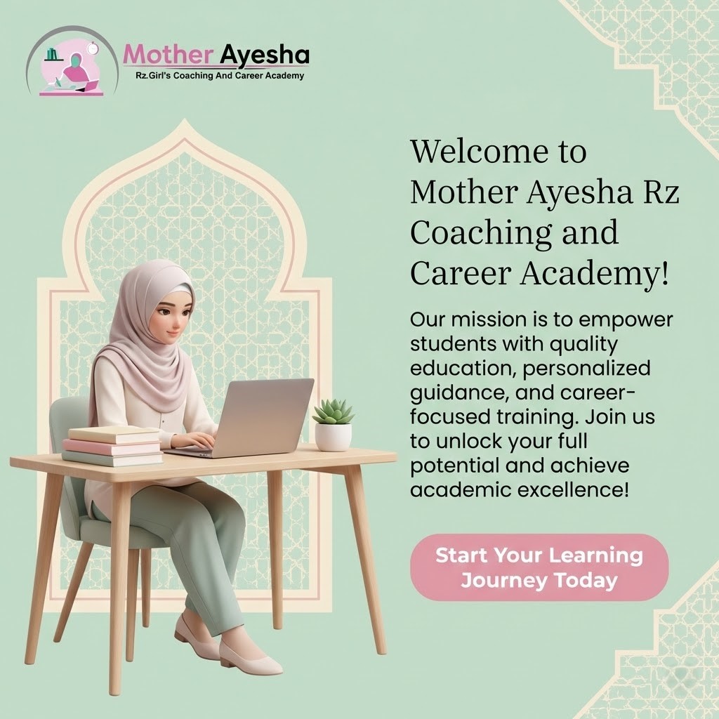 Mother Ayesha Rz Girls Academy sirf ek online darsgah nahi, balki Muslim bachiyon aur khawateen ke liye ek aisa “Digital Qila” hai jahan unki dini shanakht ko mehfooz rakhte hue unhein dor-e-haazir ki qiyadat ke liye tayyar kiya jata hai. Hum aisi nasal tayyar kar rahe hain jo Quran ki rooh se waqif ho aur technology ki zuban par abar rakhti ho.
